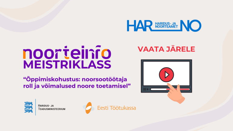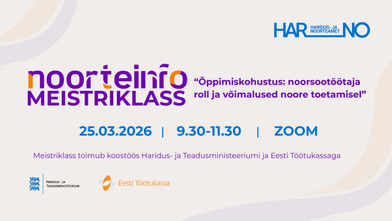 Haridus- ja Noorteamet kutsub koostöös Sotsiaalkindlustusametiga noortega töötavaid spetsialiste 4.03.2026 kell 9.30-11.30 osalema noorteinfo meistriklassis
