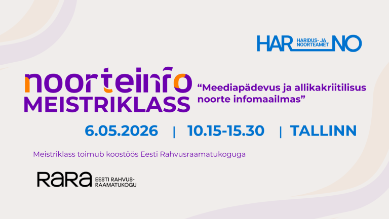 Haridus- ja Noorteamet kutsub koostöös Eesti Rahvusraamatukoguga noortega töötavaid spetsialiste 6.05.2026 kell 10.15-15.30 noorteinfo meistriklassi